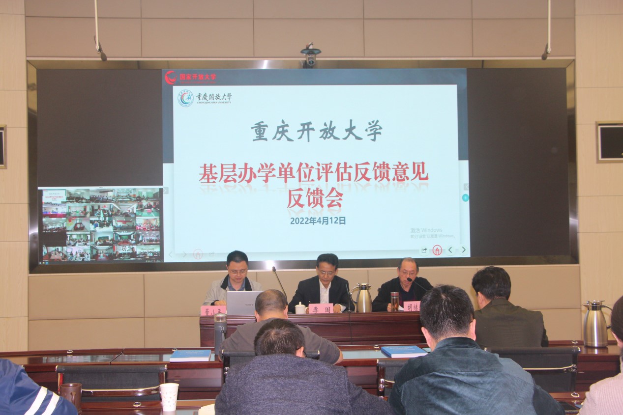 【供稿/远程教育中心】为扎实推进分部办学评估工作,4月12日下午,办学体系基层单位办学评估意见反馈会在华岩校区217会议室和各基层办学单位分会场同步召开。党委副书记、校长李国,重庆市教育评估院高等教育评估所所长董小平,迎评工作小组成员及全市办学体系43所基层办学单位相关负责人参会。会议由副校长胡继明主持。