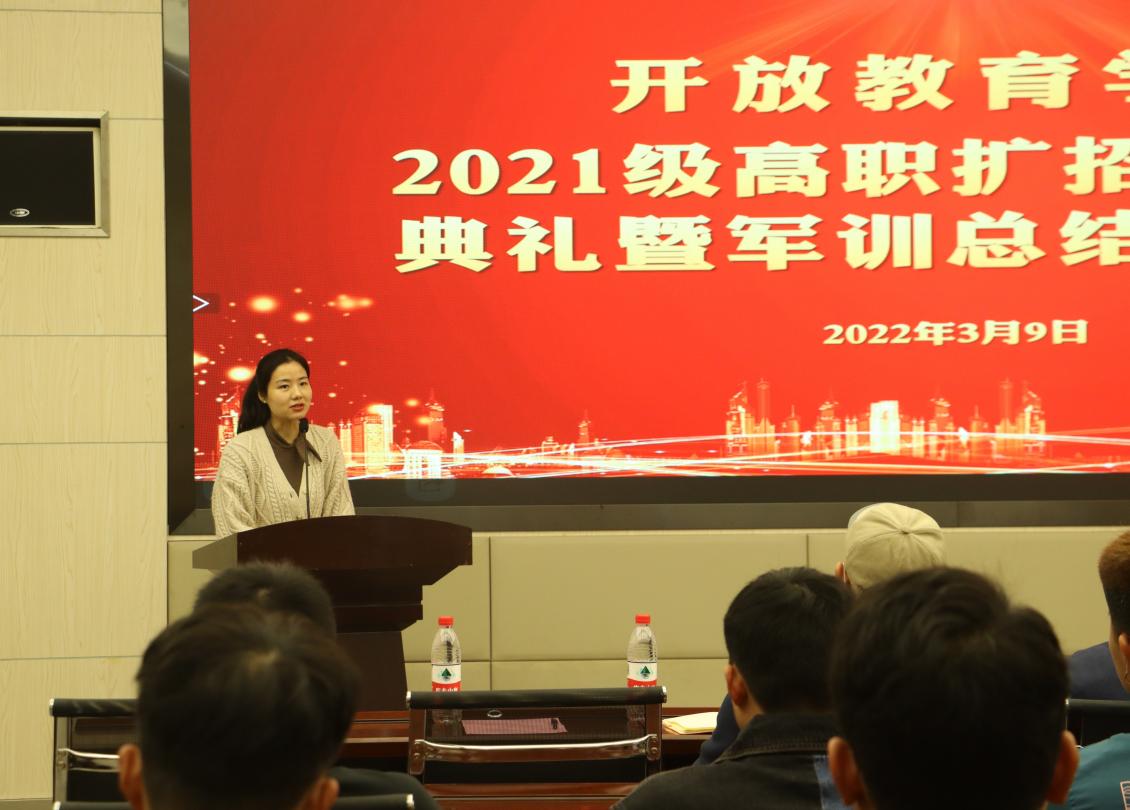 【供稿/开放教育学院】3月9日上午,开放教育学院2021级高职扩招新生开学典礼暨军训总结表彰大会在华岩校区综合楼217会议室举行。