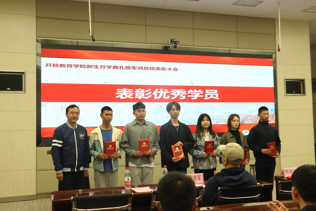 在军训总结表彰大会上,开放教育学院副院长唐德军宣读了《开放教育学院关于表彰2021级军训优秀学员的决定》。开放教育学院院长任德齐为优秀学员颁发了荣誉证书。任院长勉励受表彰的同学再接再厉,在今后学习、生活中,继续发扬训练中形成的奋勇拼搏精神,以勤奋、忠诚、朴实筑成精神脊梁。