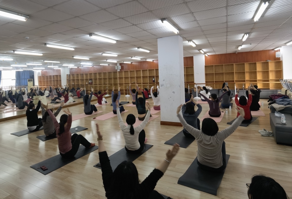 【供稿/校工会、图书馆】为庆祝第112个国际妇女节及全国第99个妇女节,响应教育部“每天锻炼一小时,健康工作五十年,幸福生活一辈子”号召,近日,图书馆与校工会在华岩校区舞蹈室举办了女职工舞韵瑜伽健身活动,来自10余个部门30余名女职工参与活动。活动现场,资深瑜伽教练张静开展了现场教学。老师们积极投入,活力四射,既锻炼了筋骨,更增进了友谊,愉悦了身心。