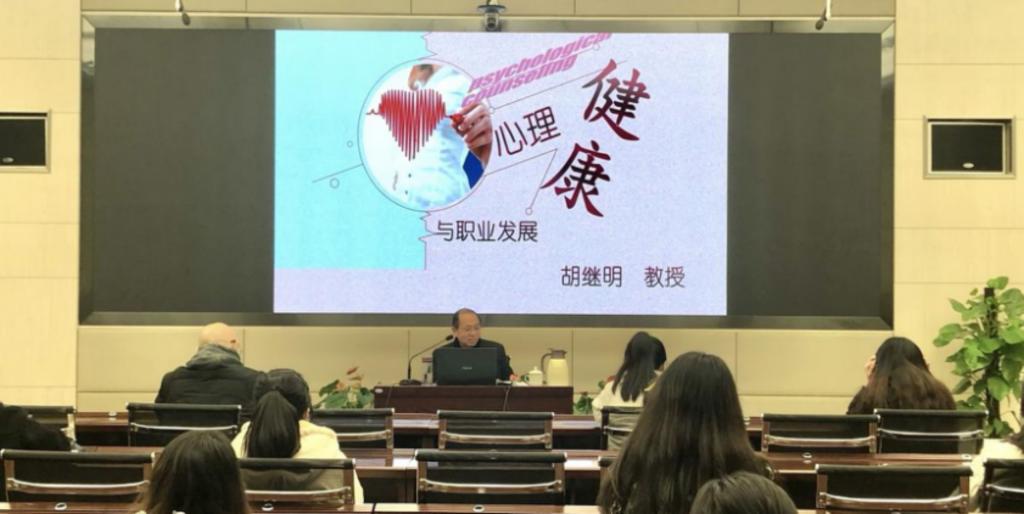 胡继明副校长以“生命的意义和价值是什么?”引出话题,与同学们分享了“伤痕实验”的故事。他从身体健康六大法宝、心理健康水平“三个良好方面”等着手,为同学们细致讲解了什么是健康,如何保持良好的环境适应能力,如何调整心态及增强自身修养的方法与职场沟通语言技巧等内容。
