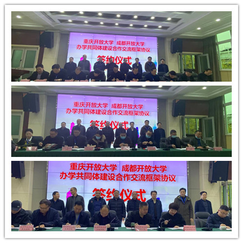 开班典礼上,举行了重庆开放大学和成都开放大学办学共同体建设合作交流框架协议签约仪式。在参会领导和参训学员的共同见证下,两校26个基层办学单位进行了结对签约,为今后开展信息互通、项目互动、师资互认、成果共享等奠定坚实基础。