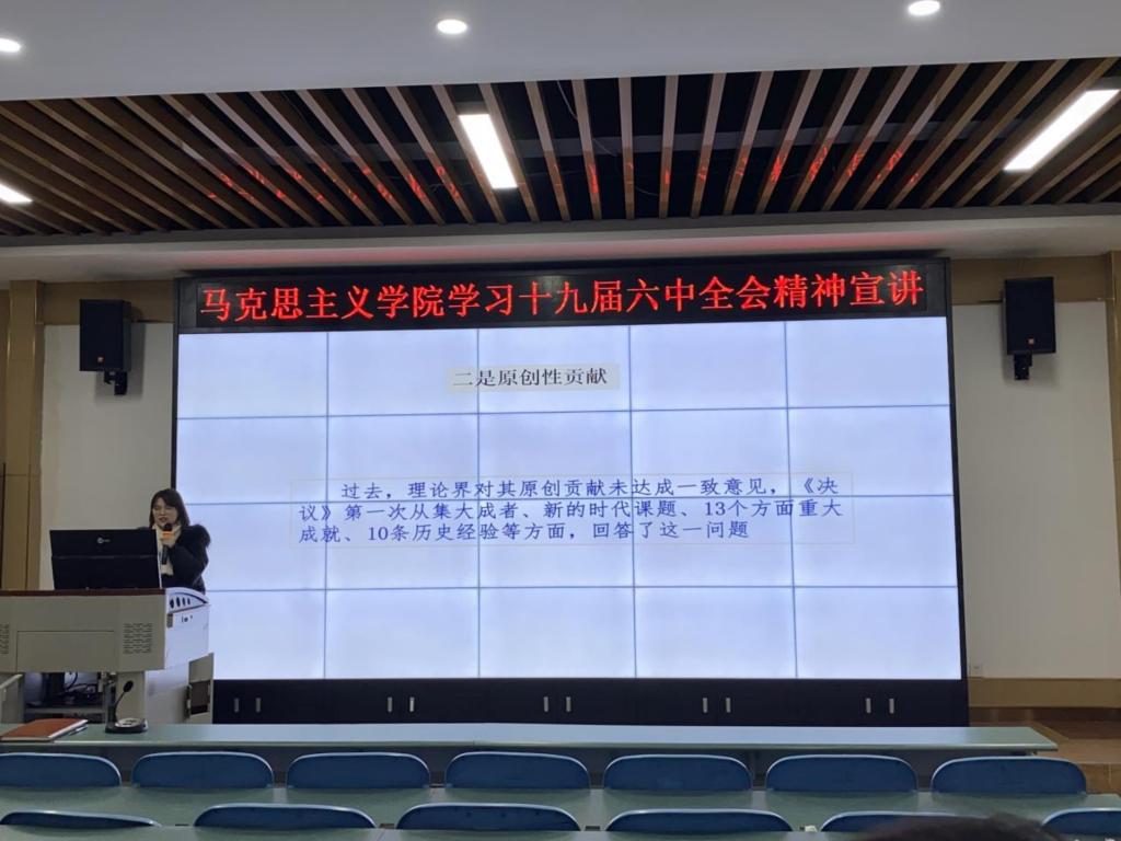 【供稿/张艳】为深入学习贯彻党的十九届六中全会精神,12月1日,马克思主义学院党的十九届六中全会精神融入思政课教学研讨会在D201举行,全体思政课教师参加会议。