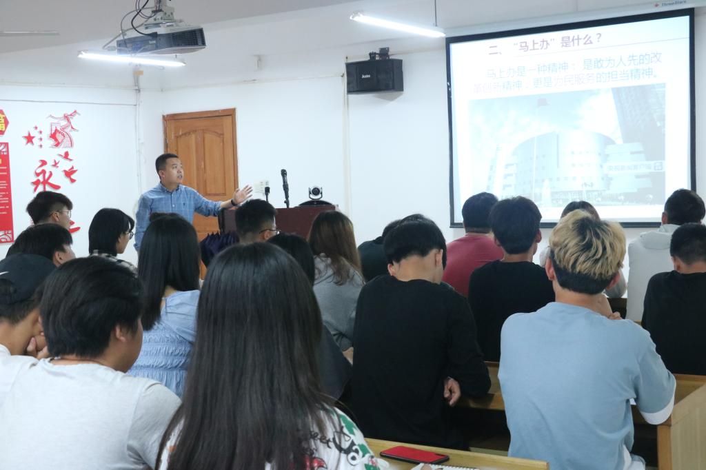 【供稿/党政办】2019年,学校党委探索形成了“线上线下”相结合“有呼必应”的“马上办”工作方式,在服务质量、响应速度、周到细致和主动作为等方面受到师生称赞。为大力弘扬“马上办”的工作作风和责任担当,在“马上办”工作机制的基础上,形成了“马上办”管理中心,成立了“小马哥”服务队,建立了常态化、制度化、规范化工作机制。