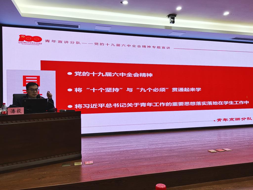 【供稿/党委学工部】12月8日下午,团市委高校部部长潘毅到我校,面向青马学员宣讲党的十九届六中全会精神。