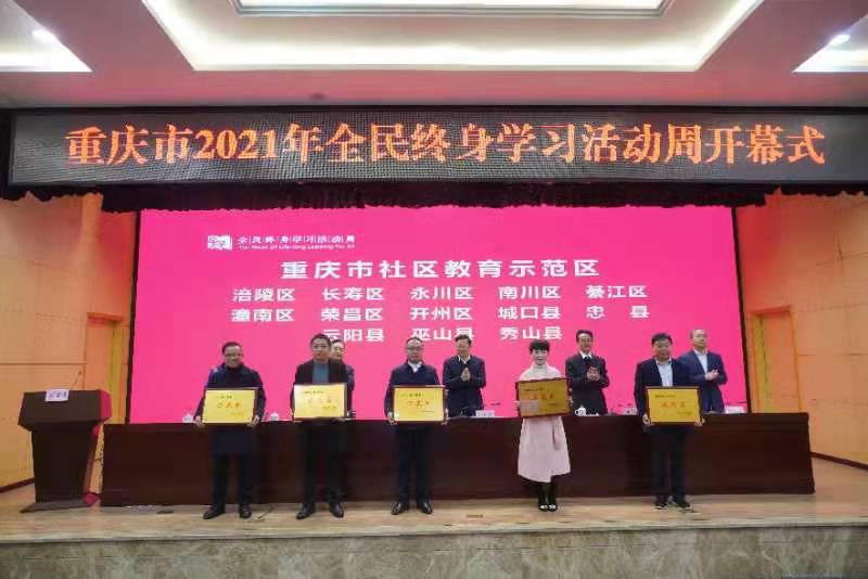 全民终身学习活动周由教育部推动和指导,是引导推动各地持续开展全民学习、终身学习,促进学习型社会建设的重要载体和特色品牌。重庆自2010年首届全民终身学习活动周举办以来,积极推动学习型社会建设,全市已有35个区县建成全国或重庆市社区教育示范区(实验区),建成重庆终身教育网和10余个区县数字化学习平台,汇聚了10万余门公益课程,访问量达到了330多万人次;依托各区县、乡镇、村居逐级建立社区学院38所、社区学校811多所、社区学习中心10000余个,构建了四级办学网络,为统筹开展城乡社区教育,构建服务全民终身学习的教育体系奠定了坚实基础。