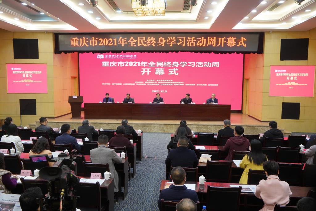 【供稿/终身教育中心】为贯彻落实党的十九届六中全会精神及习近平总书记关于教育的重要论述,推动实现构建服务全民终身学习的教育体系奋斗目标,12月3日,以“庆建党百年华诞 谱终身学习新篇”为主题的重庆市2021年全民终身学习活动周开幕。本次活动由重庆市教委主办,我校承办,主城九区教委协办。