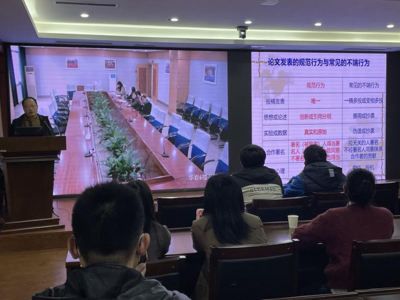 郭兵教授围绕为何要进行科学研究、如何进行科学研究、科研项目的类型、课题申报论证的技巧及科研诚信问题等与新进教师们展开交流。在谈到学术不端问题时,郭兵教授向教师们提出忠告,高尚师德师风和学术诚信贯穿教师职业生涯的始终,要爱护声誉,严以自律。