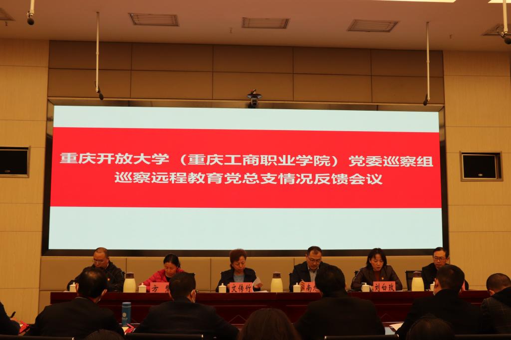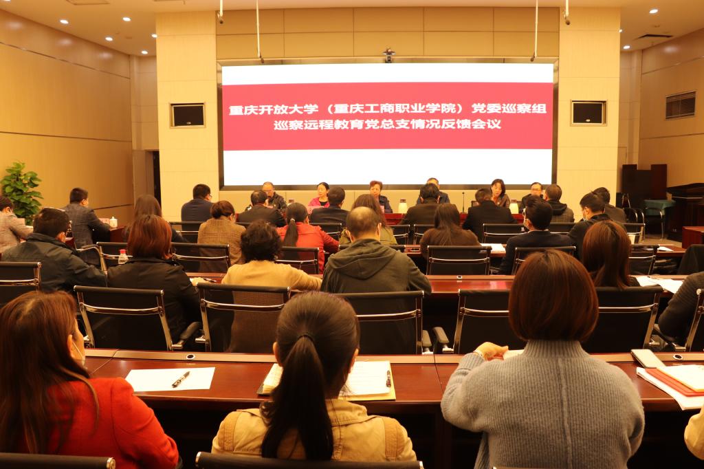 【供稿/学校党委巡察办】按照学校党委要求和巡察领导小组的部署,10月29日,重庆开放大学(重庆工商职业学院)党委巡察组巡察远程教育党总支情况反馈会议在华岩校区综合楼217会议室召开。校党委委员、纪委书记、监察专员、校党委巡察工作领导小组副组长文传竹同志参加向远程教育总支党政主要负责人的单独反馈及向远程教育总支领导班子反馈会议,传达了学校党委关于巡察整改的有关精神,对巡察整改提出要求。巡察组组长刘白玫同志分别向远程教育总支党政主要负责人和领导班子反馈了巡察情况。会议分别由巡察领导小组成员、巡察办主任南旭光和远程教育党总支书记向宇主持。