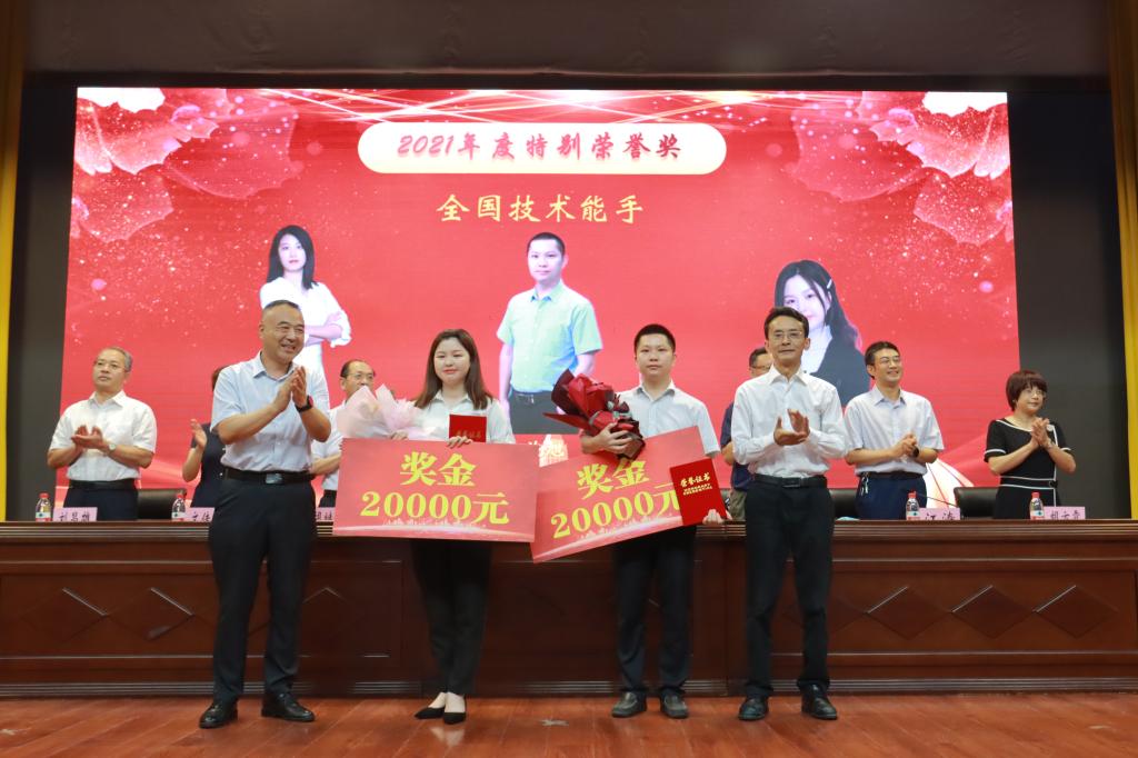 会上,校长李国宣读了《重庆广播电视大学 重庆工商职业学院关于表彰2021年度各类荣誉的决定》。经各单位推荐、教师荣誉体系评选表彰工作小组评议、校长办公会研究、党委会批准,我校对杨浩等63名在2021年度作出突出贡献的优秀教职工进行了荣誉表彰、颁发了荣誉证书,同时表彰了第二批国家级职业教育教师教学创新团队数字媒体技术专业、全国技术能手、国家社科基金年度项目等3项特别荣誉奖,授予了荣誉证书及奖金。
