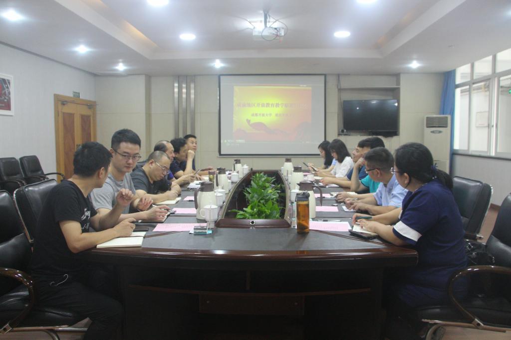 会上,我校与成都开放大学对各自办学特色进行了介绍,双方就推进“成渝双城经济圈开放大学教学联盟”建立进行了深入探讨,明晰成立教学联盟的目的、意义、路径、机制及保障措施,在直播课堂、师资共享、专业共享、课程共建、资源共用等具体合作事项上达成一致意见。