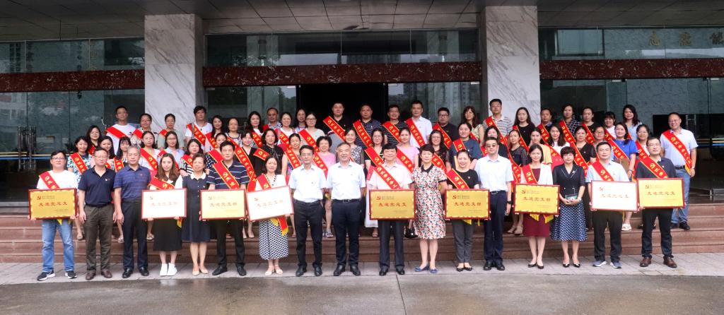 首先,全体参会人员在党委书记郭庆同志带领下,集体重温了入党誓词。随后,学校党委为后勤党总支等3个基层党组织授予第二季度创建“新时代枫桥式基层党组织”流动红旗。然后,向优秀共产党员、优秀党务工作者和先进基层党组织颁发了证书、奖牌,杨华、李彦儒两位同志作为“两优一先”表彰代表进行交流发言。