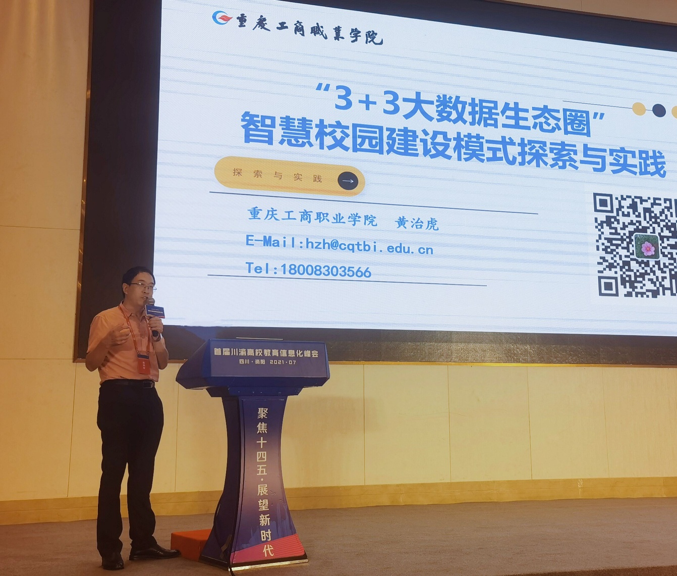 【供稿/网信处】7月8日,由四川省高等教育学会教育信息化专业委员会、重庆市高等教育学会教育技术专业委员会主办的首届川渝高校教育信息化峰会在四川资阳召开。我校网络安全与信息化处处长黄治虎应邀参加峰会并作主题发言。