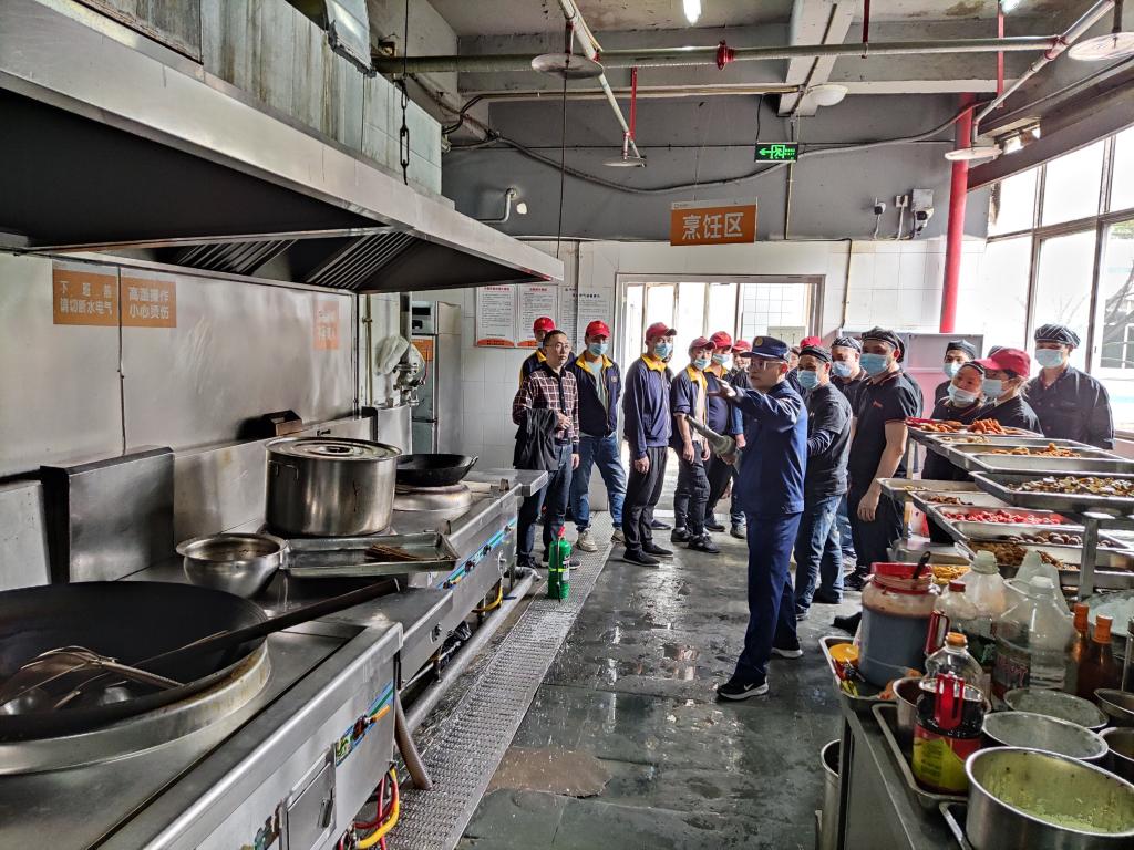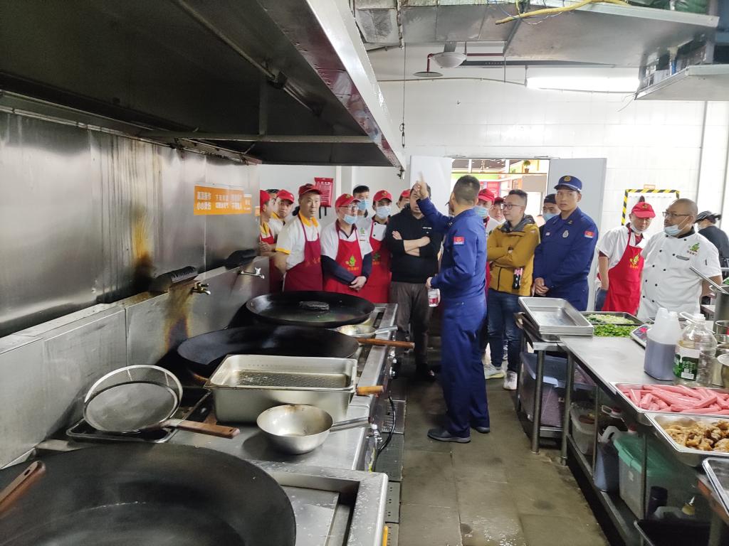 培训结束后,培训教官来到食堂烹饪间为厨师们现场指导如何使用消防器材进行初期火灾扑救和应急处置。
