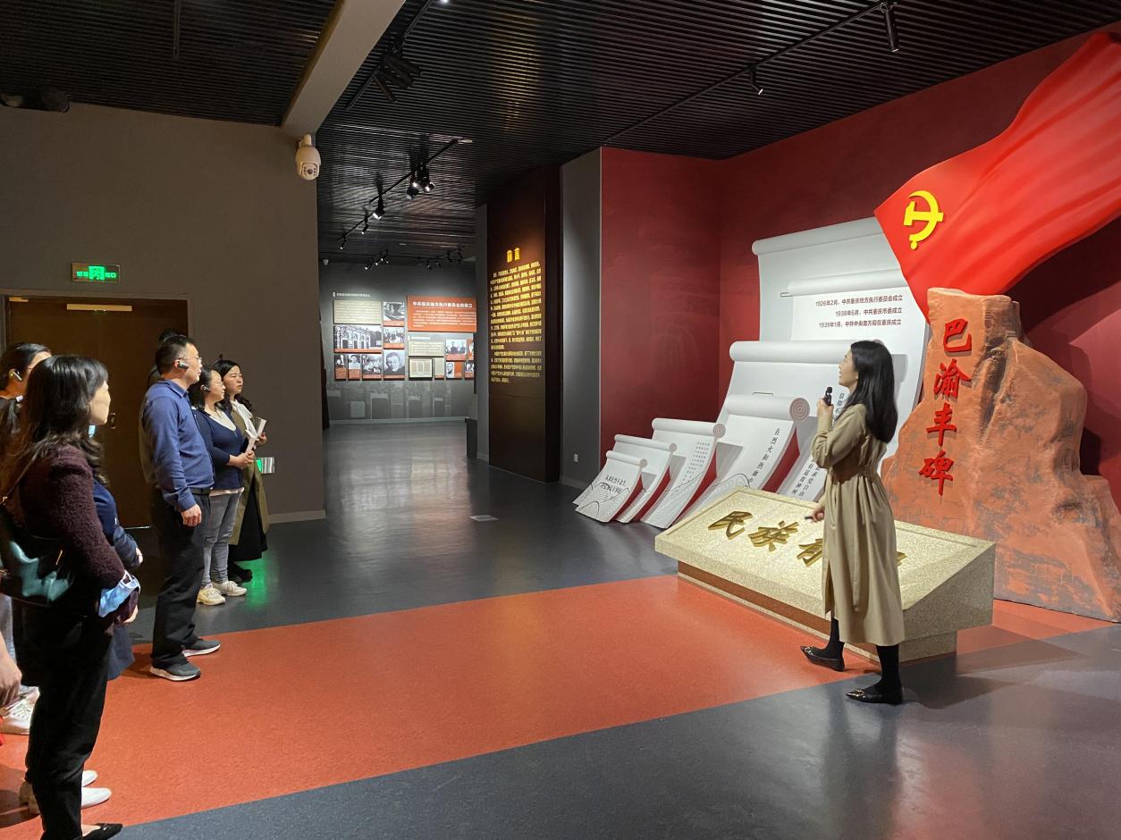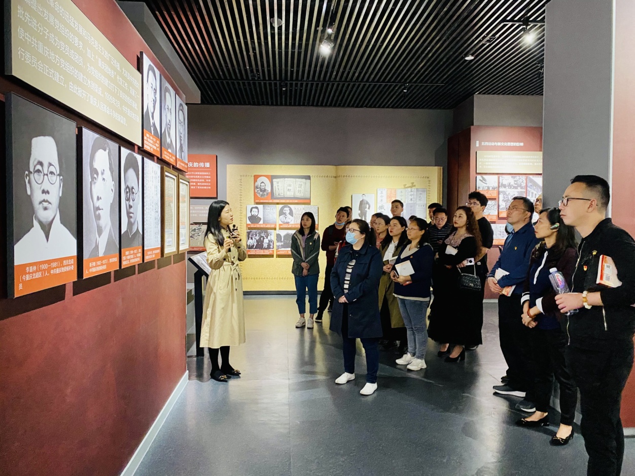 在《民族脊梁巴渝丰碑——中国共产党重庆革命史(1921—1949)》展厅内,全体党员在讲解员的带领下,全面学习了中共重庆地方党组织自1926年成立以来,在党中央领导下,团结带领重庆各族人民前仆后继、不怕牺牲,夺取新民主主义革命胜利的奋斗历程。在《重庆记忆——近代以来的重庆发展变迁》展厅,党员们认真学习了重庆自1891年开埠以来130余年间的发展变迁历程,了解了重庆在政治、经济、交通、科教文卫等方面取得的重大成就。