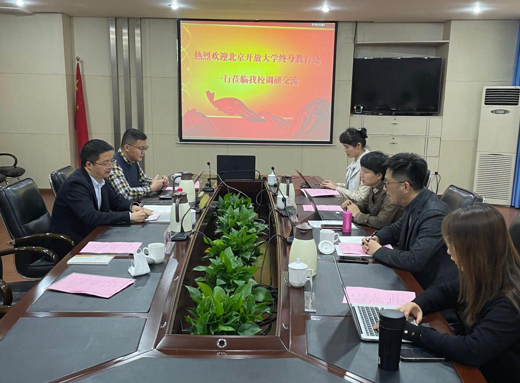 【供稿/学分银行管理中心】4月16日上午,北京开放大学终身教育处处长孙月亚、副处长国兆亮等一行4人到我校调研交流学分银行建设情况。校学分银行管理中心相关工作人员参会,会议由学分银行管理中心副主任吴南中主持。