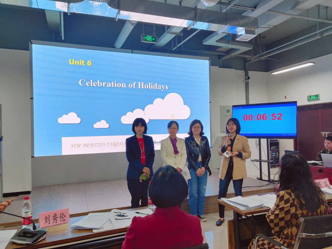 随后,7支教学团队按抽签顺序依次登场,并现场抽取教案进行无学生教学展示。各参赛团队从教学内容、教学方式、语言教态等方面作了全方位展示,语言清晰、思维流畅、自然大方、极富感染力。
