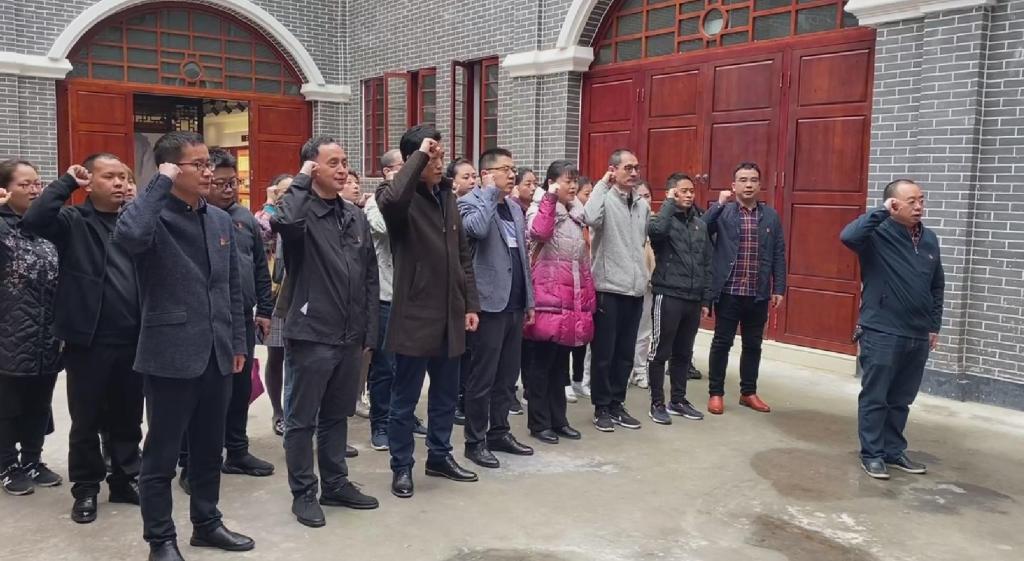 以邹进贤同志为书记的中共綦江支部,是重庆有确切记载的最早党支部,也是整个四川最早的三个党组织之一。全体党员同志在中共綦江支部旧址面对党旗重温入党誓词、重忆入党经历、重问入党初心。