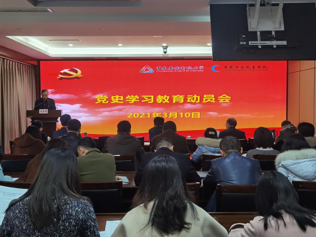 【供稿/党委宣传部】3月10日上午,我校在合川校区行政楼220会议室、华岩校区217会议室召开党史学习教育动员会。党委书记郭庆作动员部署讲话。学校全体校领导,处级以上干部,总支、支部书记及委员参加会议。