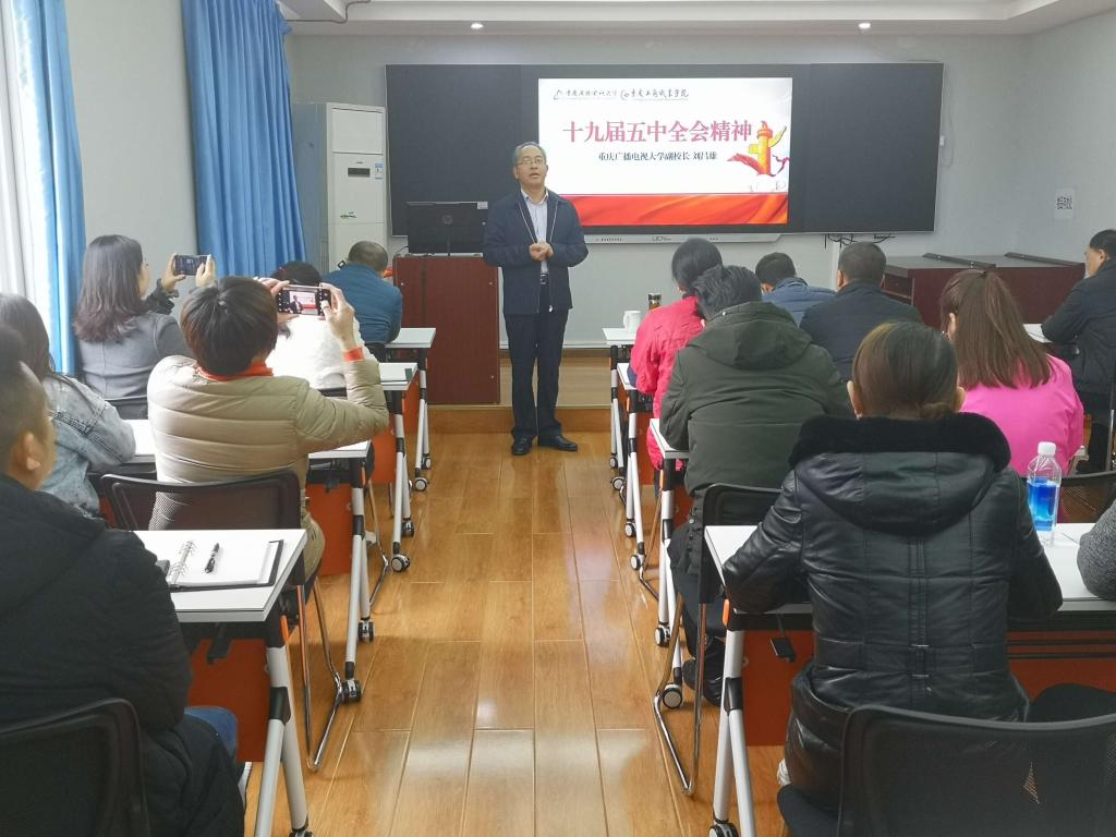 12月16日-17日,党委书记郭庆走进机关一、后勤党总支,以及学习社、“青马班”、红岩精神讲解队成员当中,开展了全会精神宣讲。党委副书记、校长李国面向机关二党总支、校学生会、各学院学生会、青年志愿者协会的师生代表进行了宣讲。