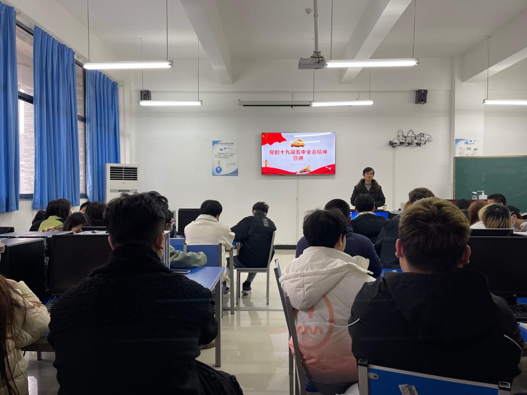 随后,学校党委委员、党总支书记、思政课教师、辅导员、学习社成员纷纷走进学生班级、学生宿舍、学生社团,面向学生代表广泛开展宣讲活动,号召在校青年将学习、领悟党的十九届五中全会精神落实落地,努力成为德智体美劳全面发展的社会主义建设者和接班人,积极投身社会主义现代化建设的伟大实践之中。