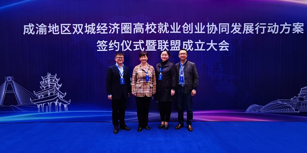 会上,举行了成渝地区双城经济圈高校就业创业协同发展联盟第一届理事会,我校当选副理事长单位,党委副书记周曦当选副理事长。联盟下分九个分盟,我校担任艺术传媒分盟副盟主。学校就业创业指导中心主任郑跃军被聘为联盟“双百”导师团成员。