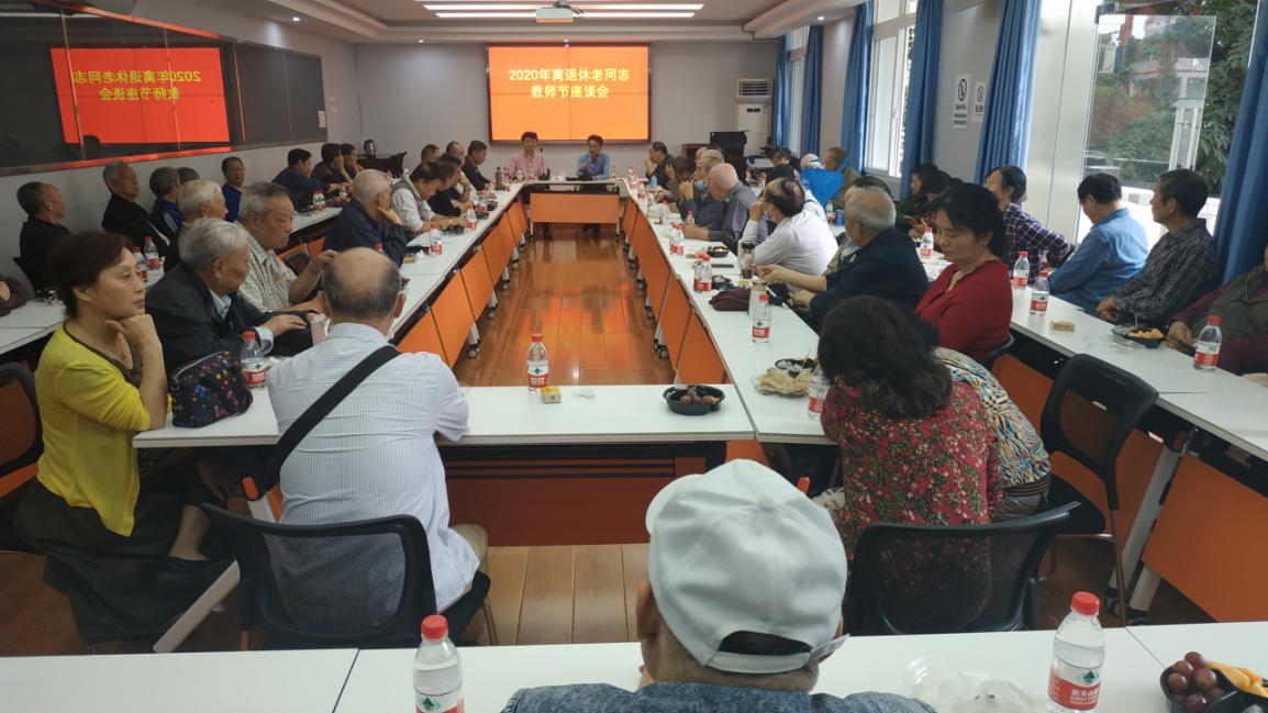 【供稿/校工会】9月15日上午,离退休老同志教师节座谈会在石桥铺校区203会议室举行。80余名老同志齐聚一堂,共同庆祝第36个教师节的到来。李国校长及离退休处负责人出席了本次座谈会。