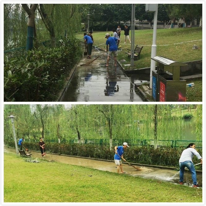 洪水退去后,被洪水侵袭的区域留下了大量的淤泥、沙子和垃圾。为确保灾后无疫情,后勤党总支立即组织人员开展清淤疏浚和消毒防疫工作。同时,对校内电力、用水、基础设施等开展全面排查,确保校园运行稳定有序。