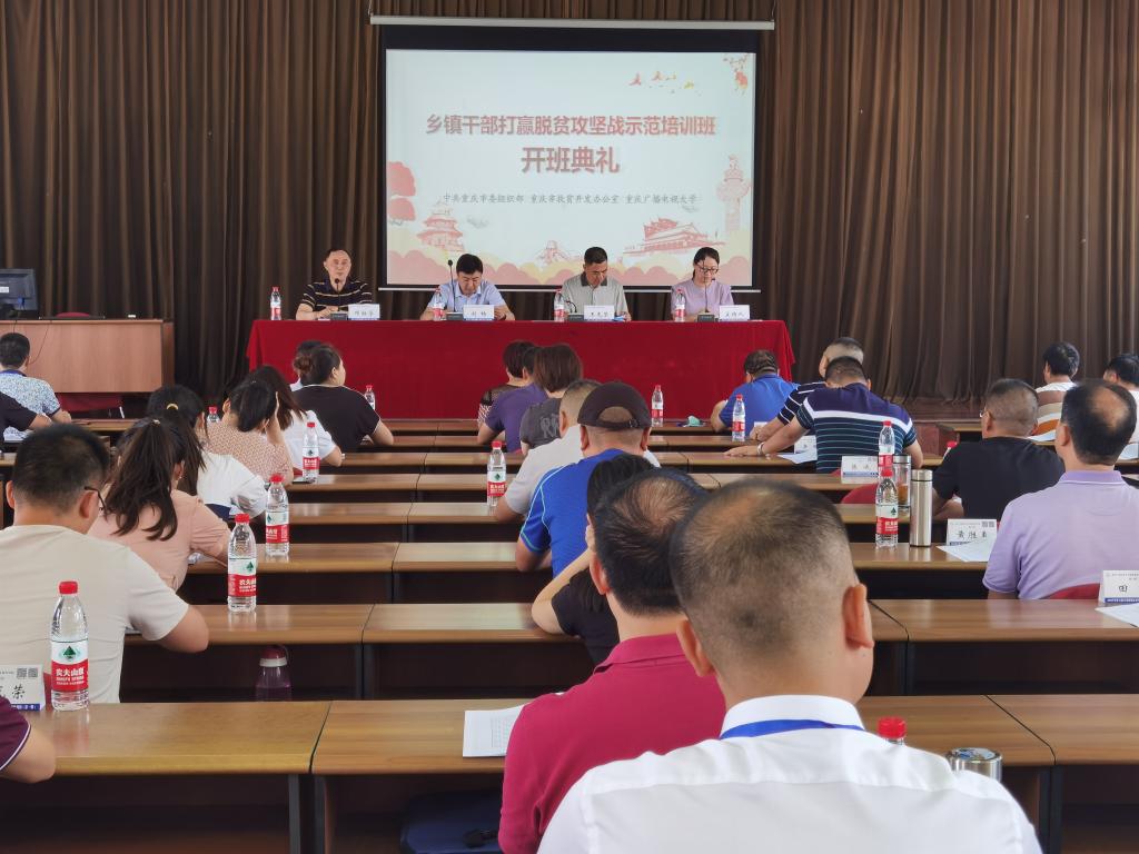 【供稿/继续教育学院】7月27日,乡镇干部打赢脱贫攻坚战示范培训班在我校顺利开班,来自全市33个区县的88名扶贫干部参加了本次培训。市扶贫办党组成员、副主任王光荣,市委组织部干部培训中心主任刘畅出席开班典礼。