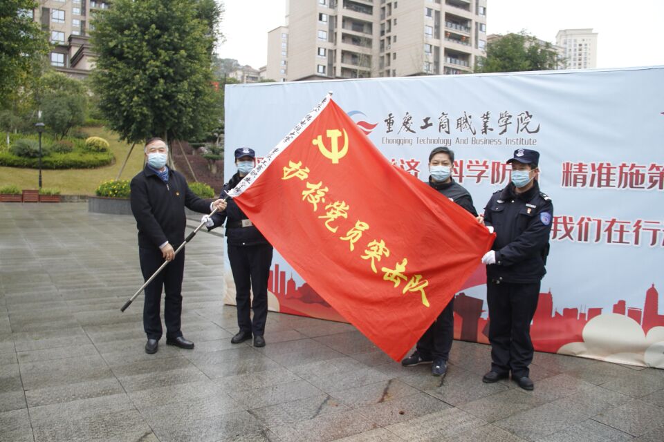 3月2日,“护校党员突击队”授旗仪式上,校党委书记郭庆向机关一党总支保卫部支部授“护校党员突击队”队旗,向疫情防控中表现突出的党员代表授“护校党员突击队示范岗”旗。党委委员、机关一党总支书记南旭光主持授旗仪式。