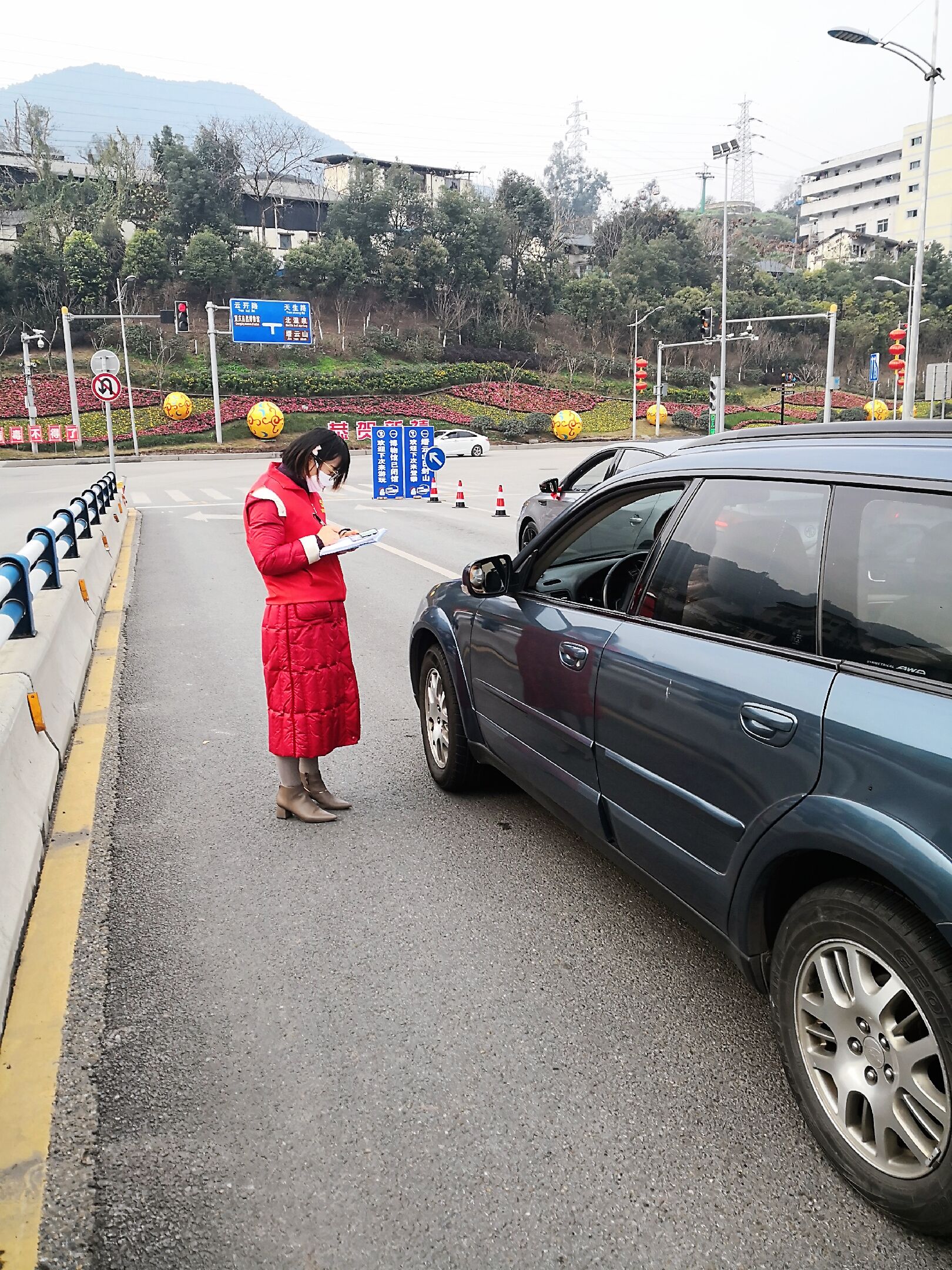 中午12点,孙艳奔赴高速通道卡点开始连续6个小时的值班,协助民警开展“两查两问”,登记所有进入城区的车辆和载客信息。作为进入城区的主要通道,私家车、出租车、公交车基本都从此经过,车流量大。只要开始上岗基本就没有停歇,很多时候都不能按时吃饭,不能喝水怕上厕所。她不停地登记着信息,手臂酸了,手冻僵了,脚也站麻了,但她说,心是暖的。这一天,她共登记渝牌车辆794辆,非渝牌车辆287辆,统计进入城区总人数1662人。