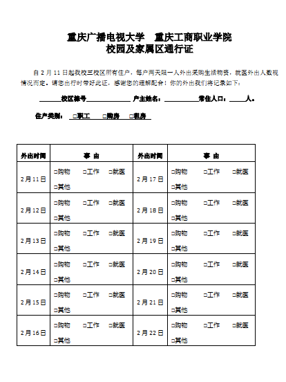 住在家属区的教职工纷纷表示,在全国上下齐心抗击疫情的关键时期,通过通行证形式加强管理,可以更好地阻击病毒、保护生命安全。大家要严格遵守、群防群控,共同打赢这场疫情防控阻击战。