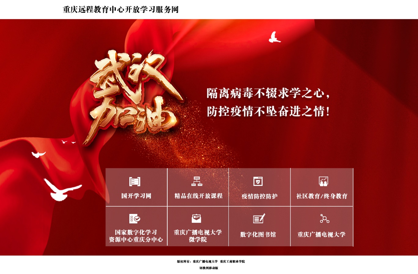 【供稿/远程教育中心】为响应教育部、重庆市教委和国家开放大学“停课不停教、停课不停学”的号召,让电大系统学员及社会大众“宅”家战疫也能轻松学习,重庆广播电视大学充分发挥办学优势,利用“互联网+教育”技术,集合国开学习网、终身教育网、数字化学习资源重庆分中心、重庆电大微学院、重庆电大在线精品课程、数字化图书馆、疫情防控防护课程等学习资源,建立了重庆远程教育中心开放学习服务网(http://rs.cqdd.cq.cn:8009/yq/p/index.html) ,免费向社会提供多类型、多层次、多维度的立体化网上学习(资源)服务。
