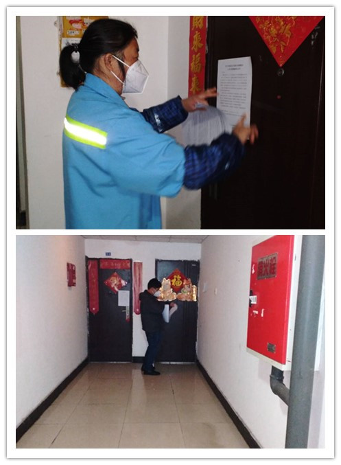 2月3日深夜12点,后勤公司李庆接到电话后,就立即和唐学能等四位同事行动起来,在家属区所有公告栏、每一户的门上、每一层电梯口处张贴《关于寻找居住在我校石桥铺校区人员可能接触者的公告》,张贴完毕已是凌晨1:30。