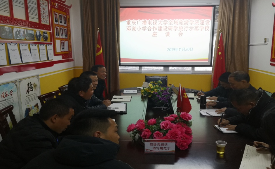 巫山分校总支部书记黄长龙、副校长程庆峡与邓家乡政府、民族小学领导班子进行了合作洽谈。洽谈会上,黄长龙介绍了全域旅游学院的建设背景,以及利用邓家乡民风民俗、民族文化特点合作建设研学旅行学校的目的和方向。程庆峡提出,研学旅行学校建设要在因地制宜开发课程上下功夫,开发具有邓家乡民族特色的课程内容。