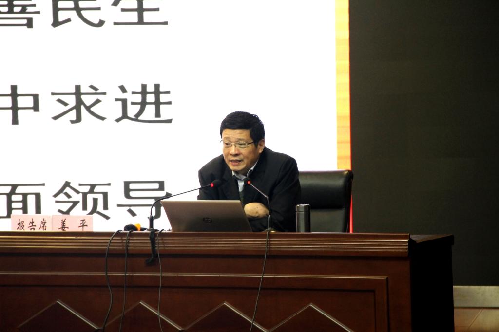 姜平教授以《新时代中国改革发展走向与高等教育创新》为题作的形势政策报告,从新时代中国改革发展总体走向、具体走向和新时代中国高等教育创新对策等三个方面,对国际国内形势政策进行了深入浅出的解读,既有理论分析,又有事实例证,内容丰富、信息量大、生动翔实,既有宏观的政策解读,又有微观的问题剖析,脉络清晰、事例生动、重点突出,高屋建瓴。姜教授理论功底深厚、观点鲜明突出、视野开阔宏大、内容丰富精彩,对于进一步加强党员干部的形势政策教育和推进主题教育持续深化,具有很强的针对性和指导性。