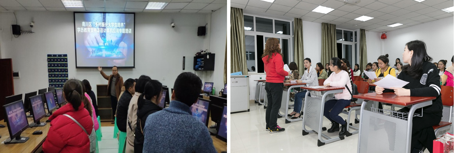 “乡村振兴大学生培养电大学历教育支持项目”是南川贯彻落实党中央国务院“乡村振兴”战略的重要人才培养项目,该项目由区委组织部牵头,区人社局、区农委、区旅文委、区教委、区商务局以及各乡镇街道共同参与,由南川分校具体组织实施,将在5年内支持培养1000名乡村大学生,目前就读学生182人。