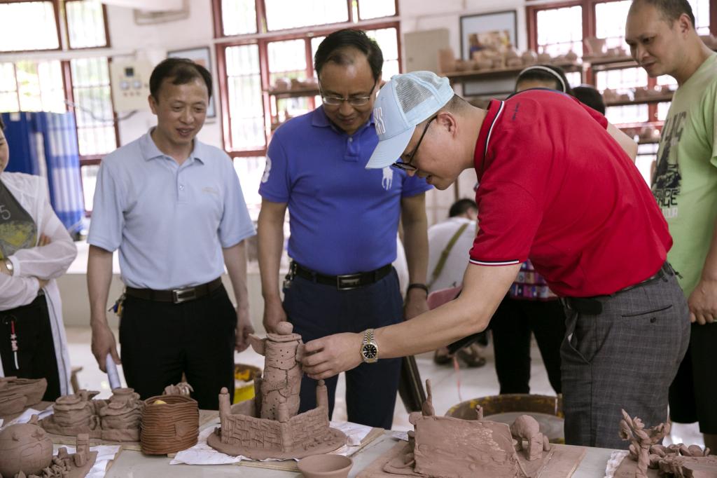 陶艺实践培训班为期一周,特别邀请了荣昌区人才引进的景德镇陶瓷专家杨敏及全国技术能手李加兴担任培训教师,培训内容包括荣昌陶发展历史、荣昌陶制作工艺、现代陶艺设计、制陶技艺及釉上彩釉下彩实践等课程,以专题讲座、参观体验、实践操作等方式进行。
