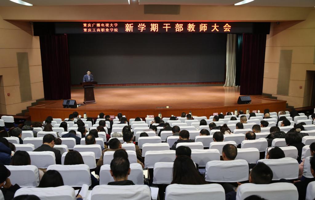 【供稿/宣传部】2019年2月25日下午,学校在华岩校区科学会堂召开新学期干部教师大会。会上,校长李国对学校党委2019年工作要点进行了解读,党委书记郭庆从“讲政治、抓落实、带好头”三个方面就如何抓好全年工作作了要求。大会由党委副书记周曦主持。