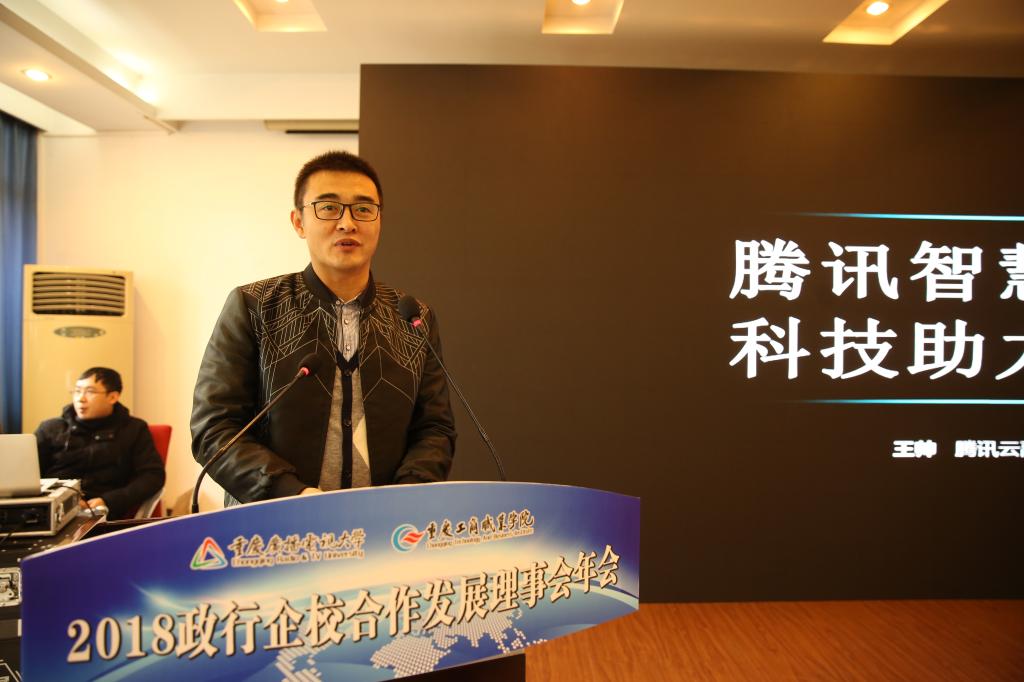 会上,学校党委书记郭庆发表致辞,他提出向改革开放致敬、向时代致敬、向“产教融合 智慧教育”的会议主题致敬。在数字经济新时代,大数据成为重要的生产资料,云计算、人工智能、互联网构建了大的生产空间,在这样的时代背景下,学校提出建设“互联网+双一流”新型高校的发展方向,“学校绕大数据智能化深化校企合作办学,2018年先后与华龙网共建互联网产业学院、与腾讯共建大数据学院、与华为共建ICT学院,与科大讯飞、阿里巴巴、格力电器(重庆)有限公司等建立了合作关系,成功获批并牵头成立了重庆数字创意职教集团。在专业建设、师资培养、课程建设、产学研合作、技能培训、学生就业等方面开展了全方位合作。校企合作的数量、质量逐年攀升。”