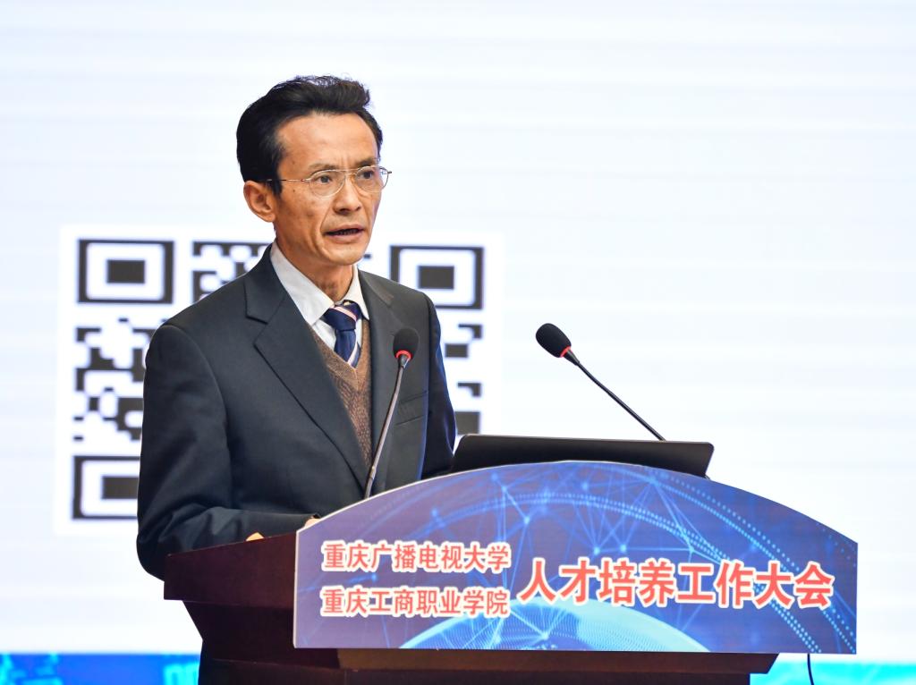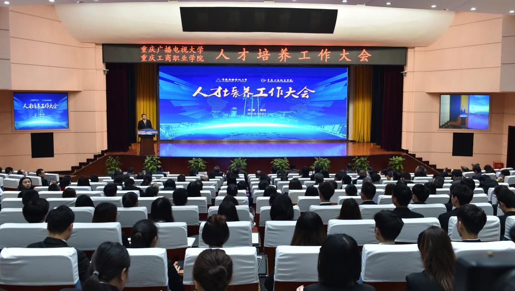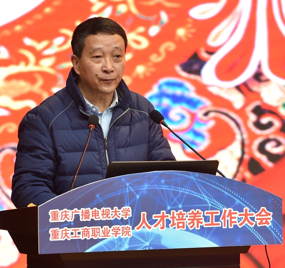 【供稿/党委宣传部】为深入贯彻落实全国教育大会和重庆市教育大会精神,提高学校人才培养质量,努力实现“互联网+双一流"的办学目标,12月21日,我校人才培养工作大会在合川校区科学会堂举行。重庆市高等教育学会常务副会长兼秘书长严欣平,四川广播电视大学党委副书记、纪委书记陈标,泰国教育部职业教育委员会苏菲娜,全校教职工,学生代表以及来自华龙网、腾讯云重庆、一汽大众、阿里巴巴淘宝大学等相关企事业单位代表出席了此次大会。通过视频会议系统直播,学校华岩校区和全市44所基层电大各分会场也同步参加了此次大会。华龙网对此次大会全程进行了网络直播。会议由副校长江涛主持。