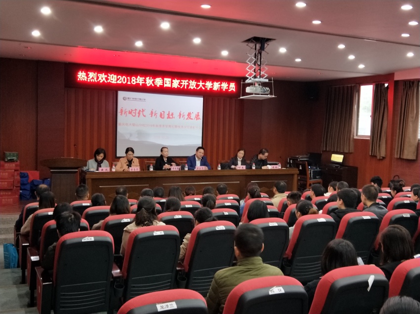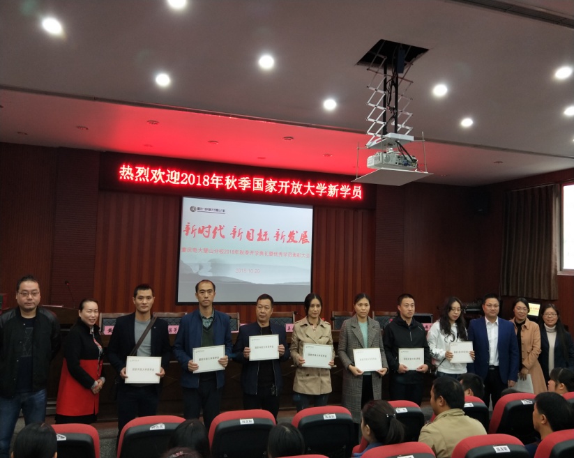 【供稿/璧山分校 何英】2018年10月20日上午,重庆广播电视大学璧山分校举行了以“新时代、新目标、新发展”为主题的2018秋电大新生开学典礼暨优秀学员表彰大会。学校行政领导、班主任、2018秋电大新生及国家开放大学2017年奖学金学员等400余人到会。开学典礼由璧山电大副校长吴永亮主持。