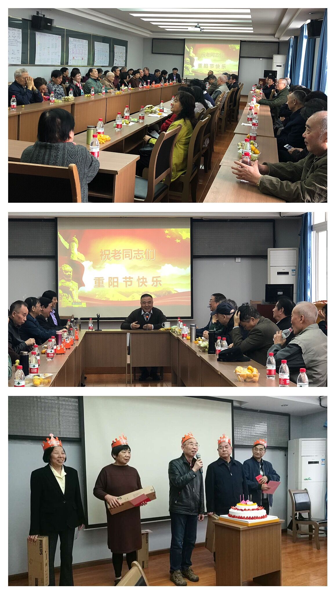 座谈会上,大家为今年年满70周岁的寿星举行了集体生日会。老同志们用朗诵、唱歌、舞蹈等方式为大家奉献了精彩的祝寿节目,为节日增添了喜庆气氛。