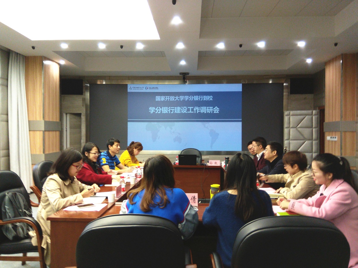【供稿/赵倩】10月16日上午,国家开放大学学分银行办公室主任安涛一行4人到我校就“学分银行建设工作”开展调研。学校副校长江涛,电子信息工程学院院长、大数据应用研究院副院长胡方霞,学分银行中心主任吴南中,大数据应用中心主任周世凯以及学分银行全体成员参加了此次调研会。