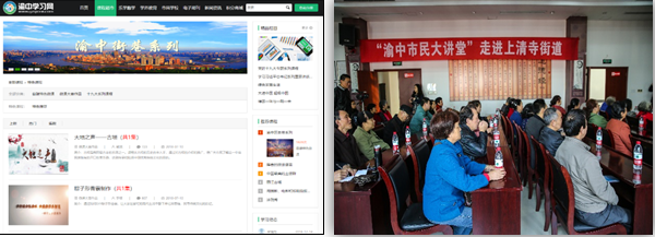 搭建网络学习平台,服务全民终身学习。一是加强终身学习服务平台建设。先后投入120余万元,搭建起渝中区市民终身学习公共服务平台—“渝中学习网”和“乐学渝中微信公众号”,实现了PC端、WAP移动端、微信端“三端合一”。渝中学习网已经开通一级栏目10个、视频课程万余门,订阅电子期刊2000多种,实现了移动端有奖答题、在线直播、学习积分等50多项功能,实名注册家庭已达到近30000户,在线学习400多万人次,满足了市民移动学习、碎片化学习的新需求,社会反响良好。二是持续开发质优量足的课程资源。不仅开发了智能手机、生活美妆、茶文化与茶艺、摄影基础、川菜烹饪、中国传统花艺等近20门市民终身学习公益课程和6门短期体验课程,还开发了国画、古埙、戏曲等中华优秀传统文化系列课程和《朝天门》等重庆母城文化系列课程,在2018年重庆市第三届社区教育微课大赛中荣获一等奖4项、二等奖1项。三是组织开展形式多样的终身学习活动。坚持举办“渝中市民大讲堂”,邀请专家学者、行业精英、社区达人定期将各类丰富的课程资源送进社区,年均送课30余场;组织开展在线直播课、“万户家庭网上学”主题活动、“幸福社区·邻里如亲”有奖答题等形式多样的社区教育活动,多次承办渝中区全民终身学习活动周启动会及社区教育成果展示活动,满足了人民群众不断增长的终身学习需求。