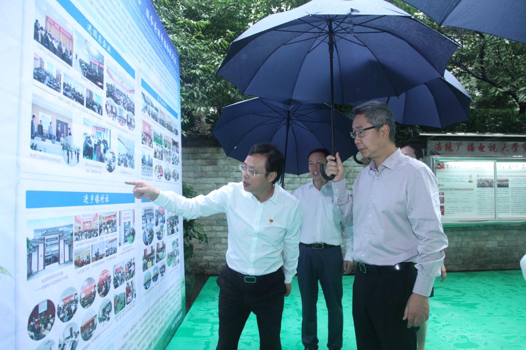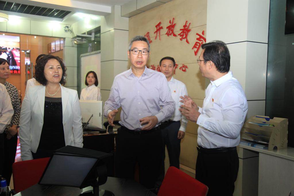 种及灵区长一行视察了学校远程教育体验中心、云教室,观看了学校办学情况展览,听取了涪陵电大党委书记、校长邹信对学校在围绕地方党政的发展规划实施的学校转型建设和“二推四进”的工作进展情况的工作汇报。