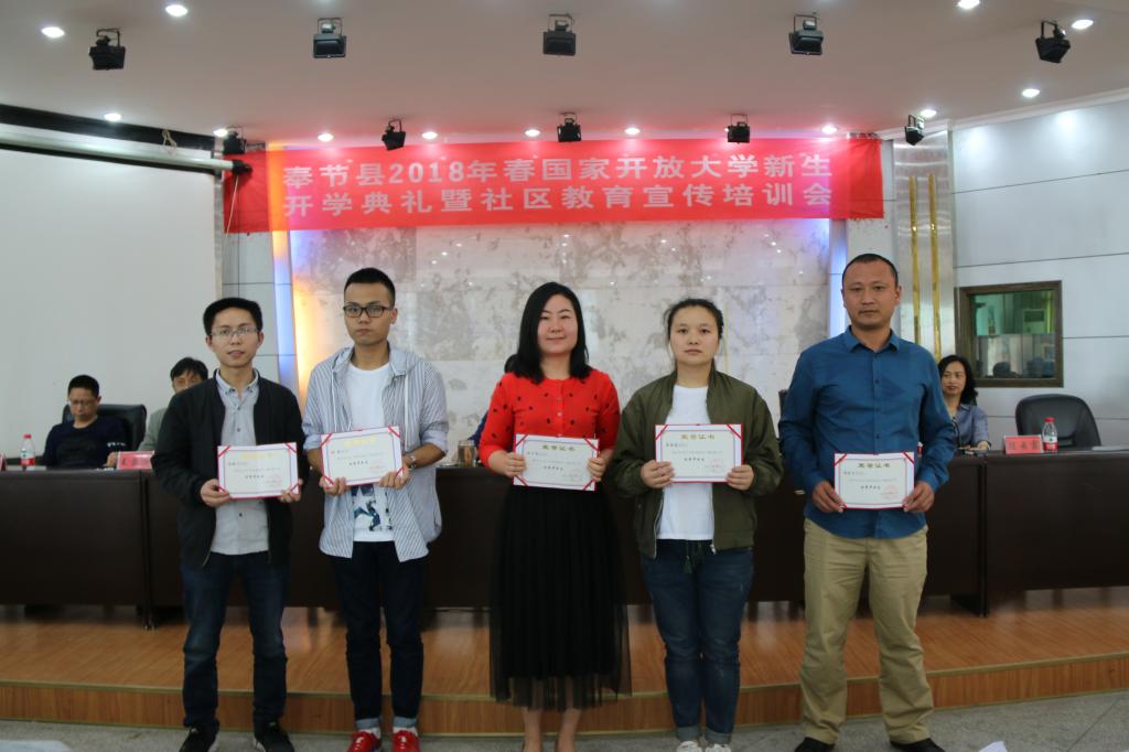 奉节县教委职成科科长杨雪宣读了学历继续教育国家开放大学奖学金获奖通知和优秀毕业生表彰文件。会上为获奖者颁发了荣誉证书。