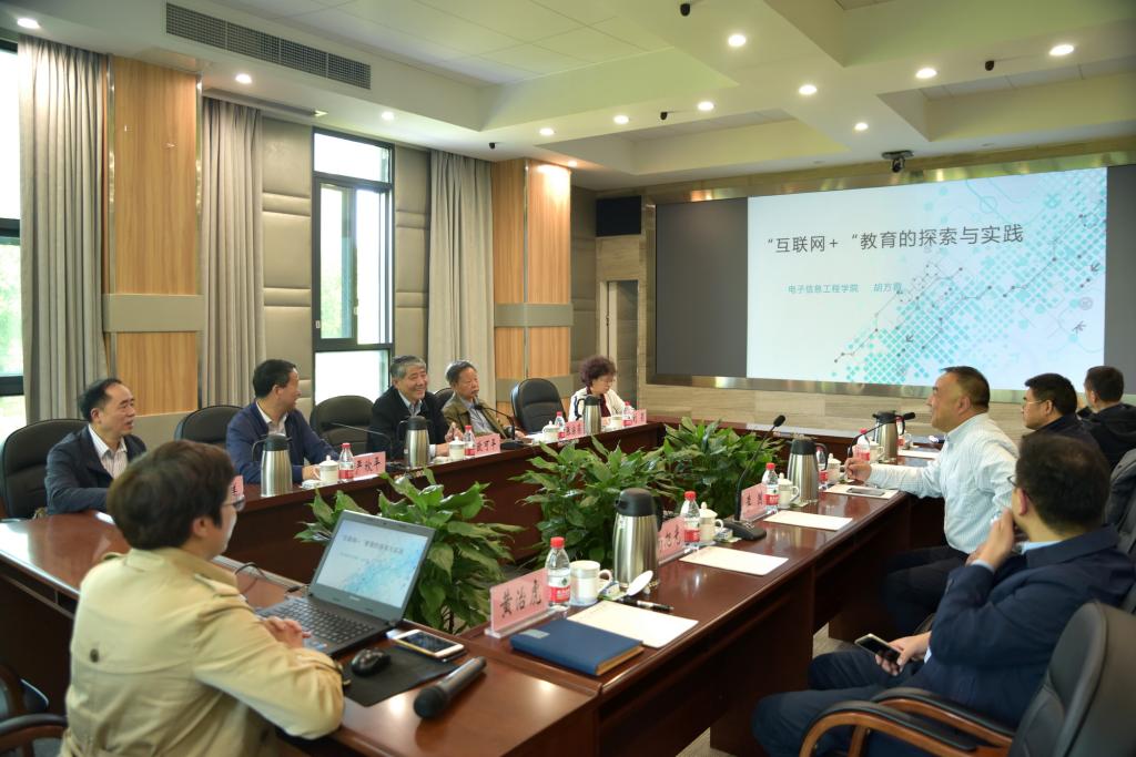 【供稿/党政办】4月18日下午,重庆市高等教育学会会长欧可平教授、常务副会长严欣平教授、首席专家张宗荫教授、副秘书长刘颖、余志祥教授一行到我校专题调研“互联网+教育”建设情况。校党委书记郭庆、校长李国、副校长江涛及党政办、大数据应用研究院主要负责同志参加了座谈会。