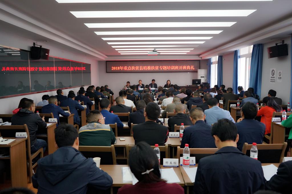 【供稿/胡星】为助推全市脱贫攻坚工作,提升重点贫困区县基层干部精准扶贫工作的能力与水平,增强打赢脱贫攻坚战的信心和决心,在市委组织部、市扶贫办的统筹安排下,4月16日上午,2018年重点扶贫区县精准扶贫专题培训班第一期在我校顺利开班,来自彭水县、酉阳县、巫溪县、城口县等四个扶贫重点县的83名扶贫干部参加了培训。市扶贫办副主任黄长武、市委组织部干部培训中心主任祝兴出席了开班典礼。