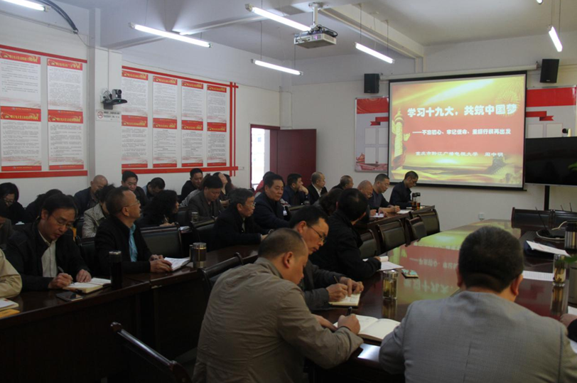 活动以阎中明校长主讲《学习十九大,共筑中国梦》主题党课开始,主题党课讲述了十九大召开的重大意义及中国梦的形成发展,并指出实现中国梦,必须坚持中国道路(中国特色社会主义道路)、中国精神(以爱国主义为核心的民族精神和以改革创新为核心的时代精神)、中国力量(13亿中国各族人民大团结的磅礴力量)。并结合学校工作实际,深刻阐释了教育梦和中国梦的紧密联系。